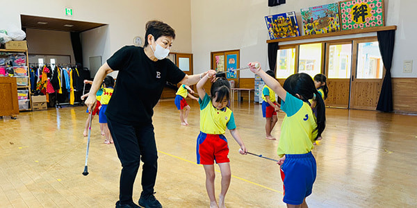 楽しい音楽に合わせてダンスを踊ったり、バトンをしたりする活動です。しなやかな動きや身体を安定させる動きをすることで柔軟性や体幹が鍛えられます。