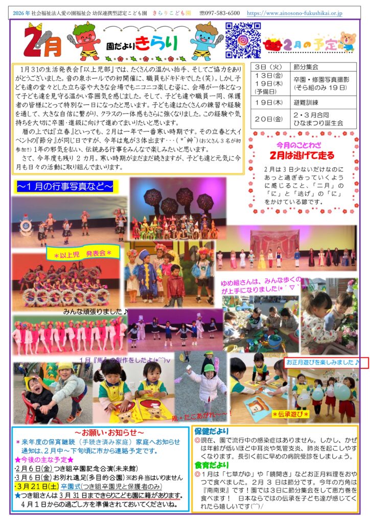 2月節分活動(保護者”鬼”参加)、修園写真・卒園写真撮影