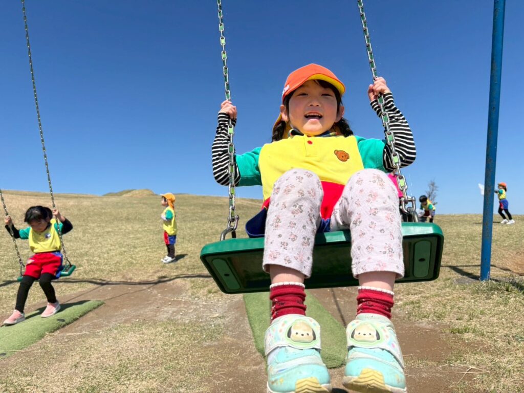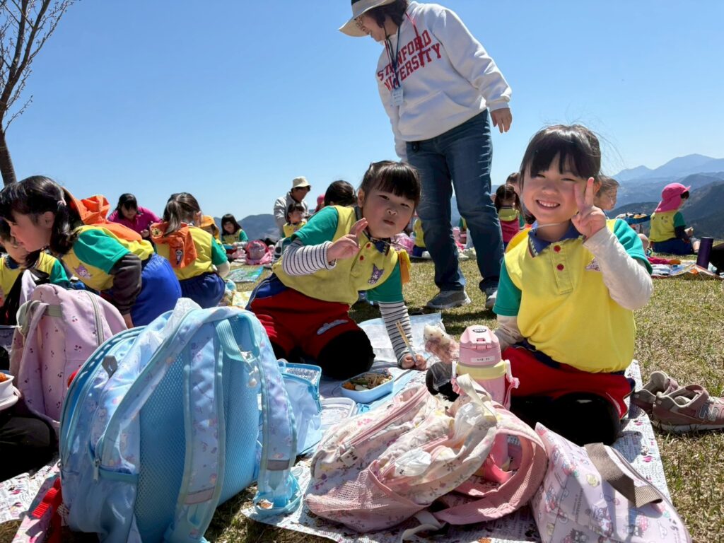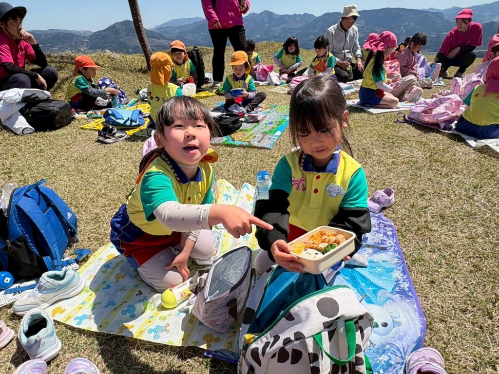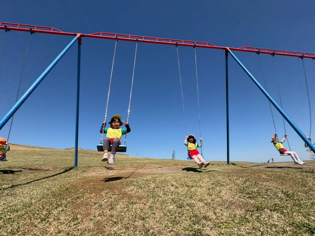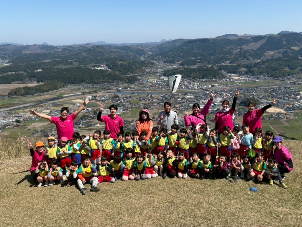4月8日(水)・・・とってもあったかい日に恒例の玖珠町「伐株山」遊びに行ってきました💛・・インスタでも公開をしていますが、こちらではちょっとしたスチールショットを💕・・・草滑りをしたり、虫探しをしたり、ブランコ遊びでとても楽しかったのです‼・・・(集合写真の後ろにはハンググライダーが飛んでいますよ)