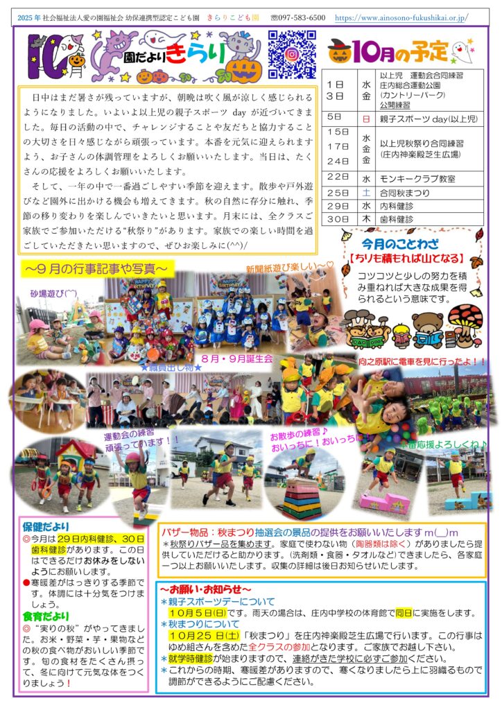 10月は、5日(日)に「親子スポーツday」庄内総合運動公園多目的広場にて(雨天時...