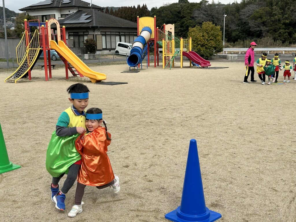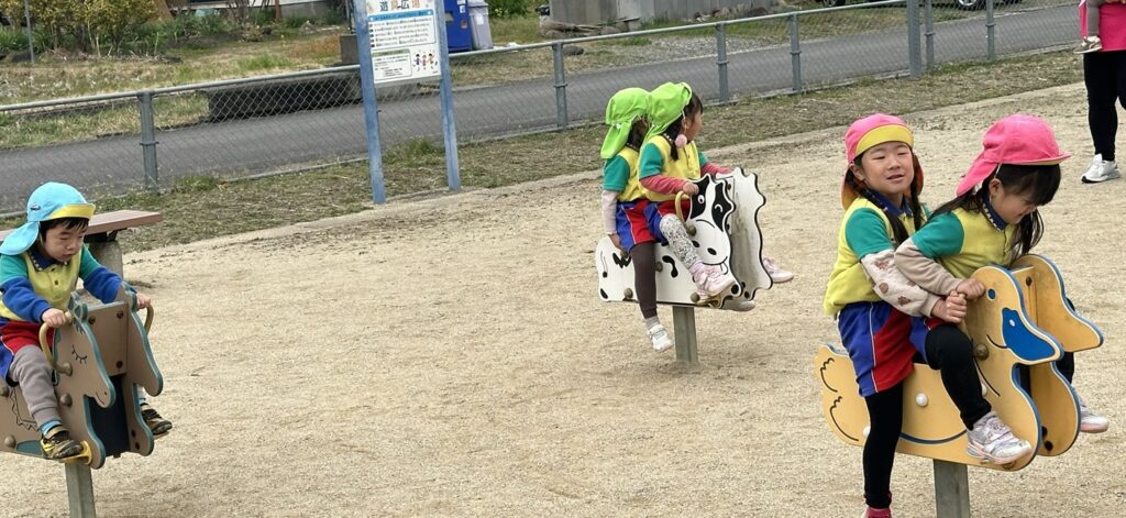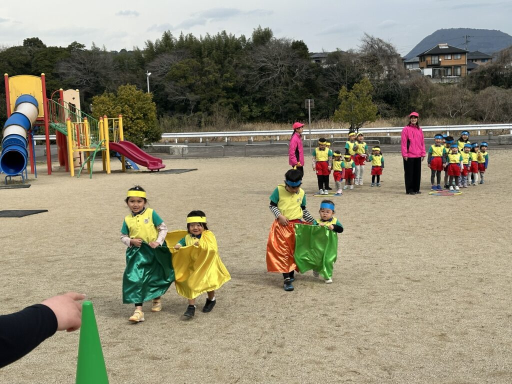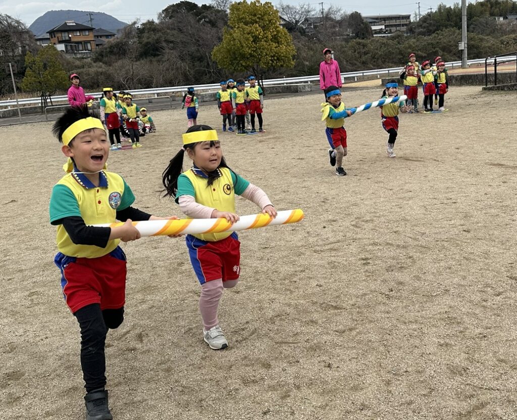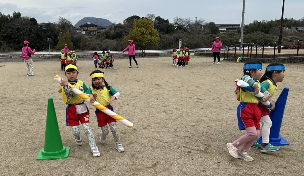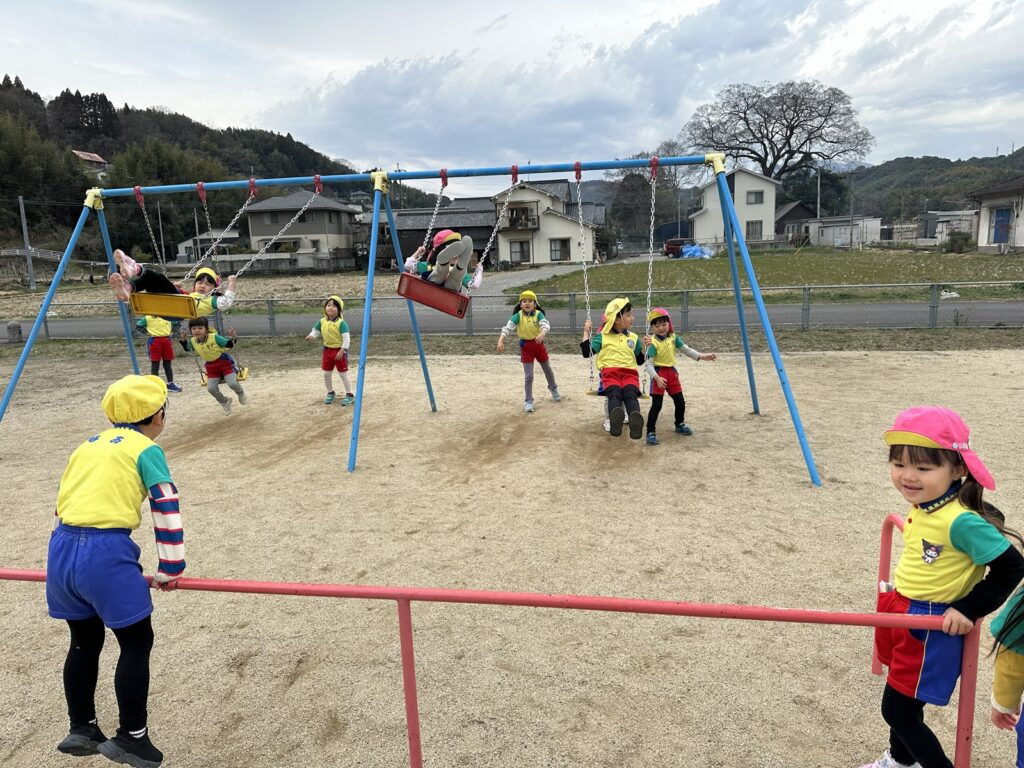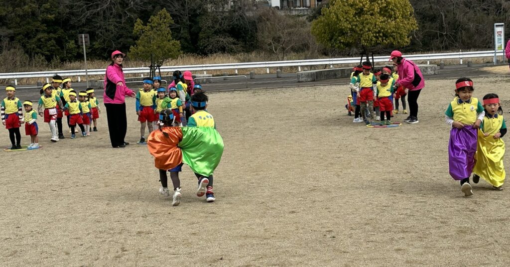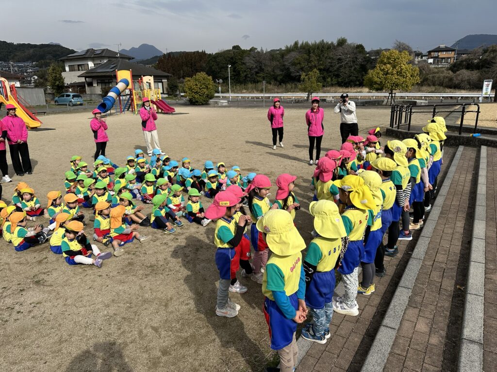 雨予報でしたが、子どもたちの日ごろの行いがいいのでしょう…薄日が差す中、3・4・5歳児+2歳児さんが数名、出発予定を約20分早めて、園を出発しました👟。1歳児と2歳児さんと0歳児クラスの数名は幼児バスで目的地の「はさま多目的公園」へ・・・つき組さんを送る言葉をほし組さんみんなで伝えました💕 ・・・愛情弁当、ありがとうございました🍚 (楽しいゲームなど写真で想像してくださいね)・・・帰りは2歳児はな組さんの数名が加わり12時15分に全員無事に帰園しました‼