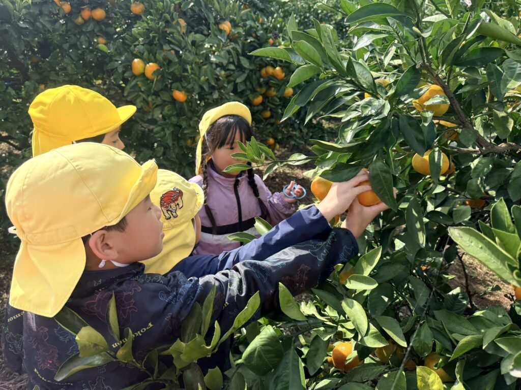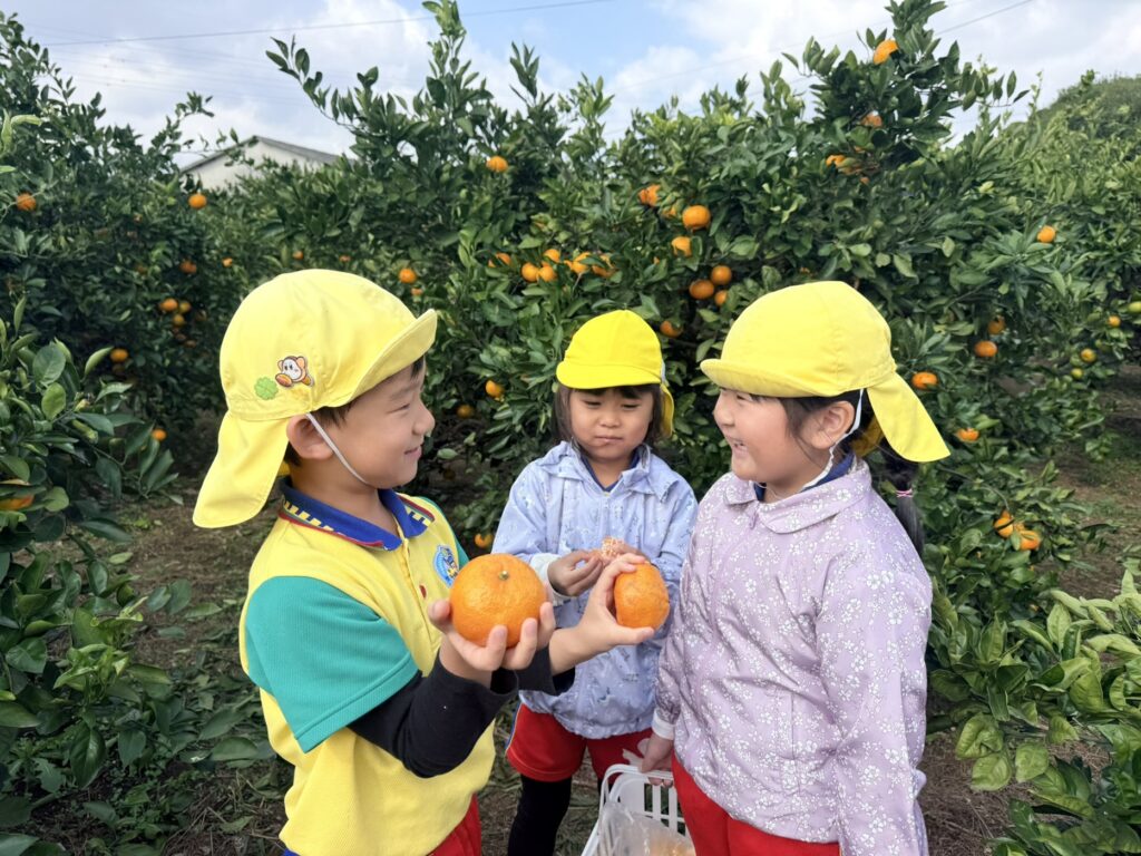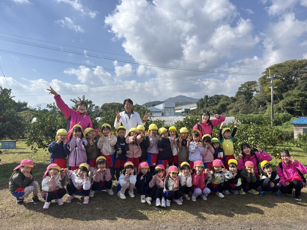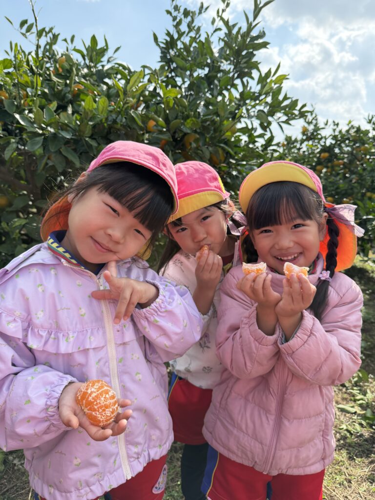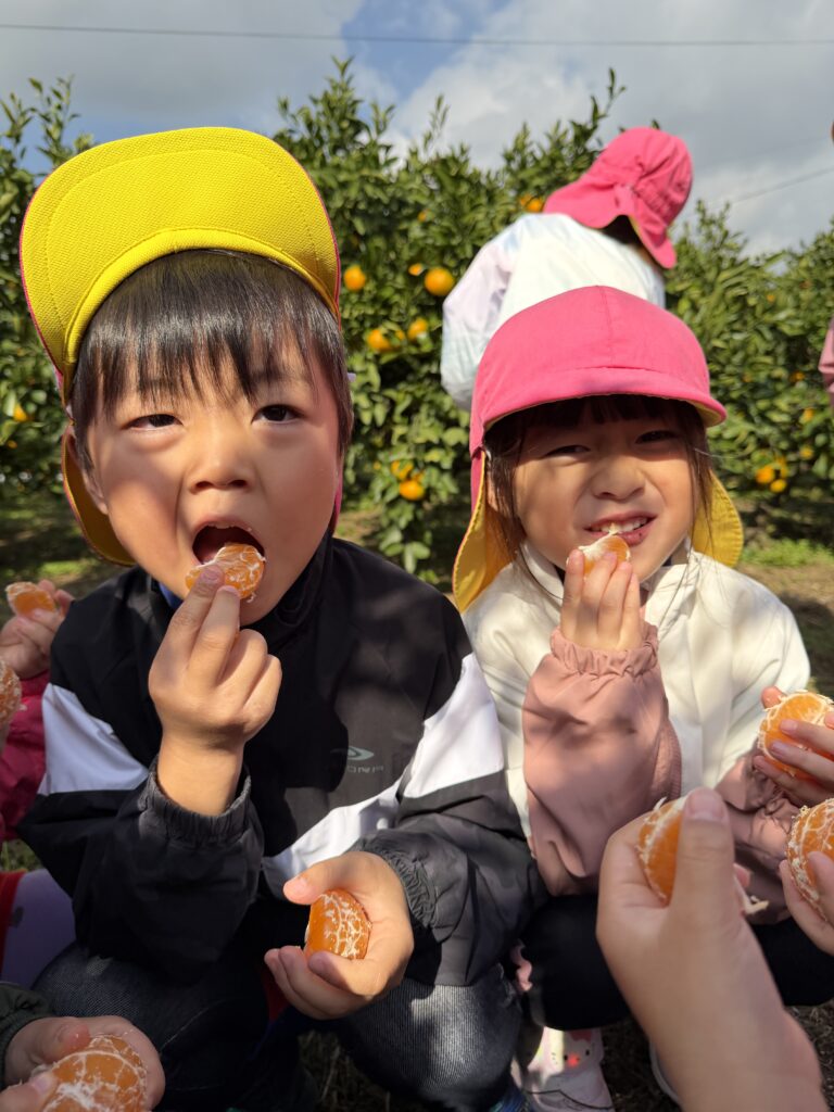 天気予報では最高気温が20度にとどかないと言っていましたが、汗ばむ陽気の中で「みかん狩り」を、つき・ほしの子どもたちが楽しみました! 日出町の関口観光農園までバスで約1時間。ひばりこども園の月組さんと合流し一人2個~7・8個と食欲に合わせて採れたてを堪能しました。昨今の物価高、入園料等も値上がりしています💦 お弁当は、いつものように鉄輪地獄公園でした。