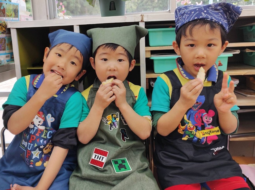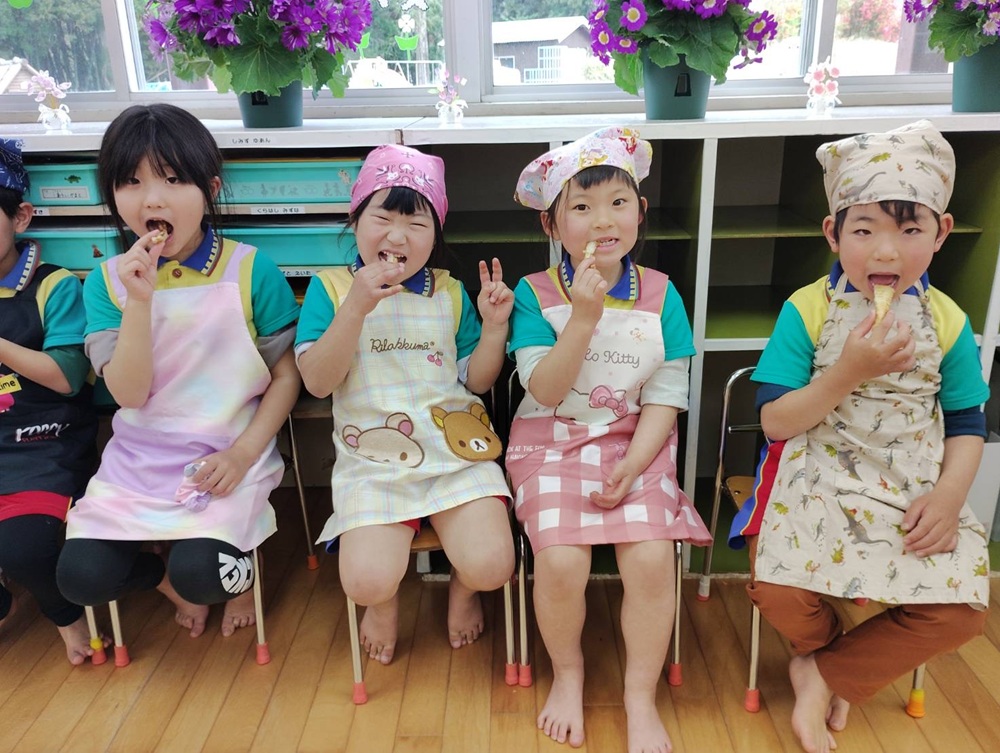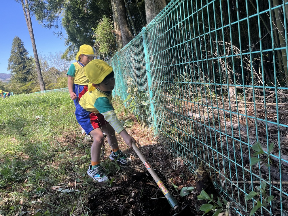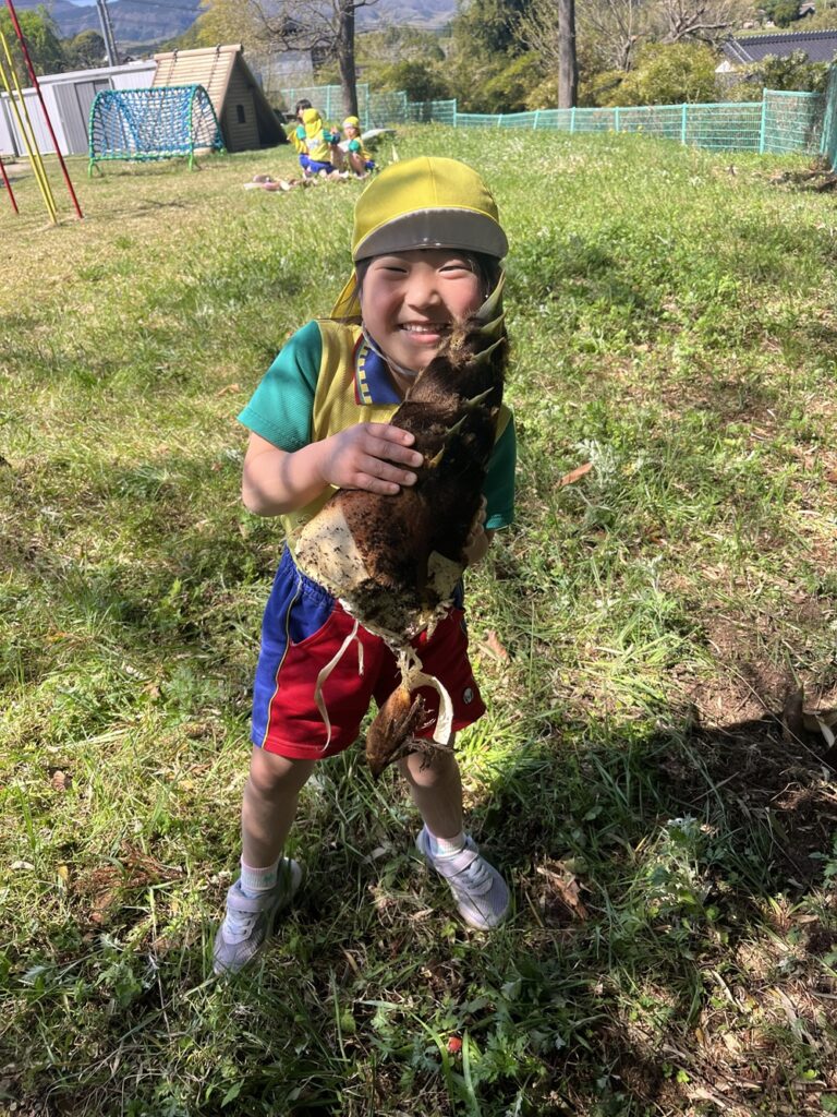 4月16日の午後からつき組は散歩へ(⌒∇⌒)道中で筍を発見!!帰園後 竹林に隣接した園庭でも筍をみつけ、筍掘り・皮むきがはじまりました!!たけのこ用の鍬を使って丁寧に掘っていきました♪とれた筍は給食でみんなで美味しくいただきました。また年長さんがから揚げにしてご馳走してくれました。春を五感で満喫しています🌸